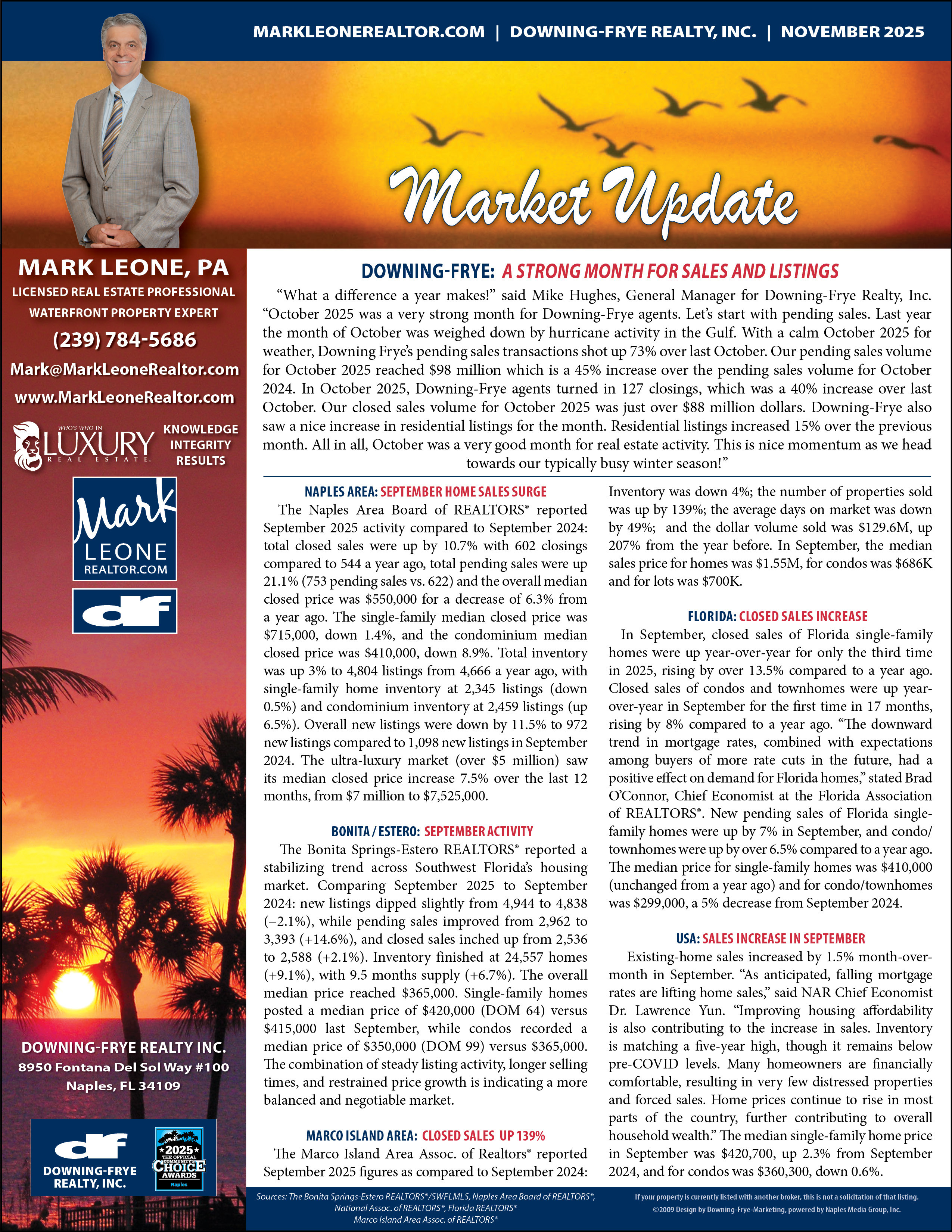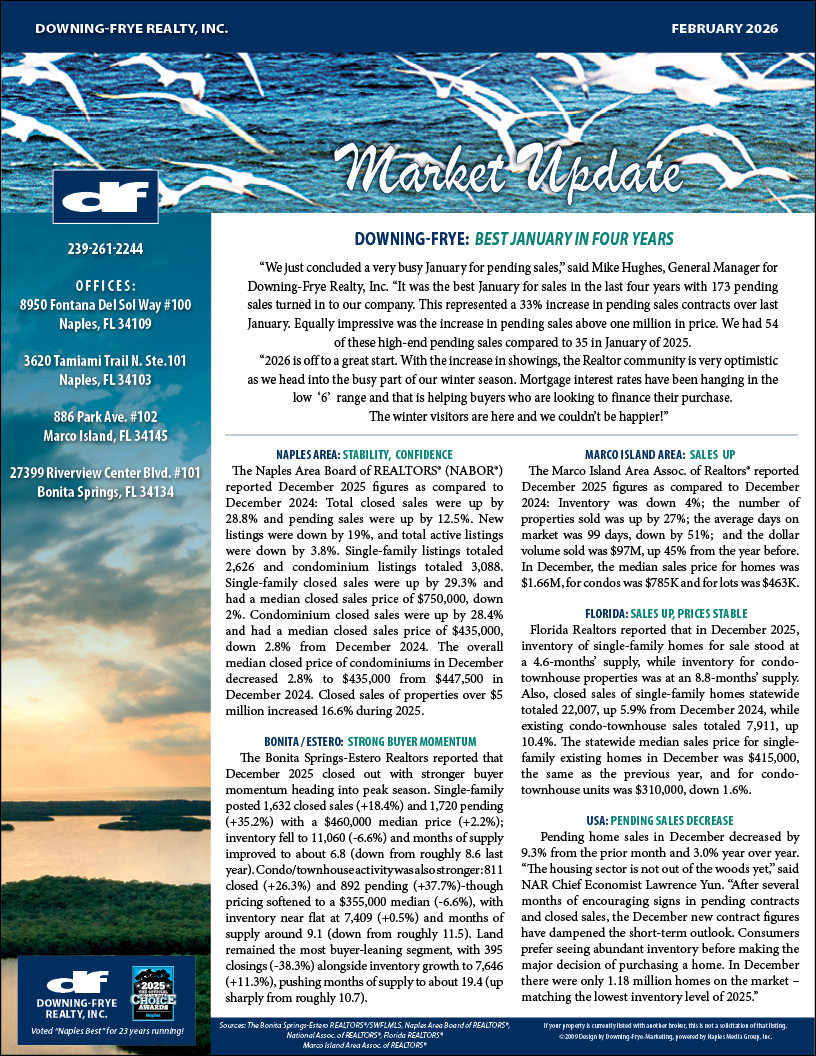 Sources: The Bonita Springs-Estero REALTORS®/SWFLMLS, Naples Area Board of REALTORS®, National Assoc. of REALTORS®, Florida REALTORS®, Marco Island Area Assoc. of REALTORS®